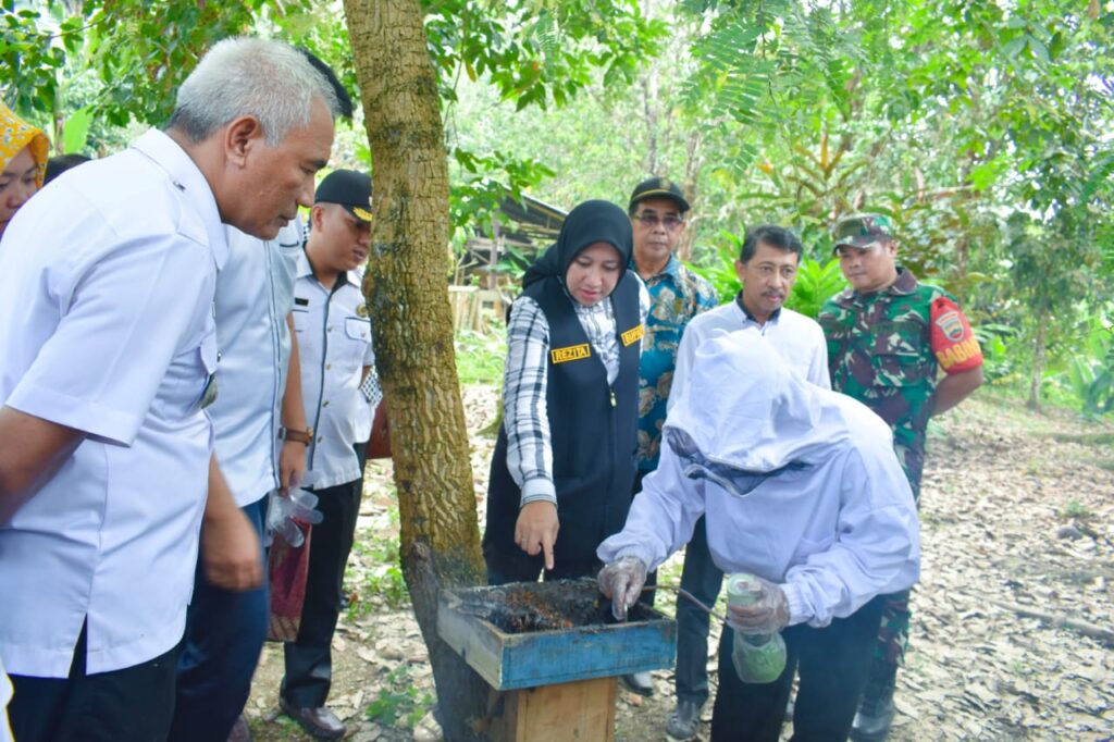 Usai dari Desa Talang Lakat, Bupati lanjut menyapa desa Sungai Akar dengan rangkaian kegiatan yakni meninjau beberapa KWT, memanen madu kelulut, meninjau Posbindu dan meninjau proses layanan seperti Disdukcapil, DPMPTSP, Disperindag dan Dispenda.