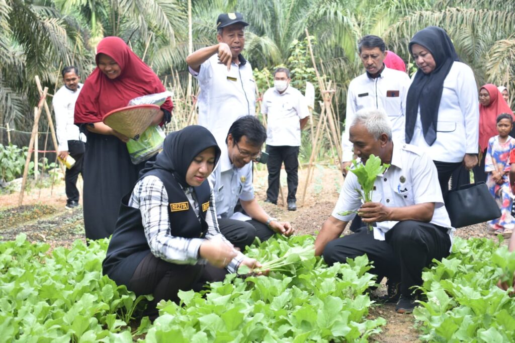 Di Desa Belimbing, Bupati beserta rombongan melakukan penyerahan Bantuan Langsung Tunai Dana Desa dan meninjau lahan pertanian yang di kelola oleh Kelompok Wanita Tani Berkah Tualang.