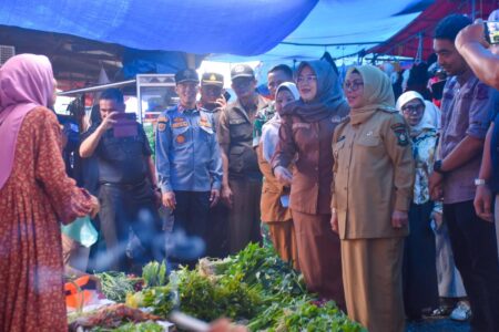 Kampar, Galamedia.co.id — Wakil Bupati Kampat Dr. Hj. Misharti, S.Ag, M.Si melaksanakan inspeksi ke Pasar Bangkinang dalam rangka memantau ketersediaan serta perkembangan harga sembilan bahan pokok (sembako) di pasaran menjelang hari raya Idulfitri 1447 H, Senin (16/3/2026).